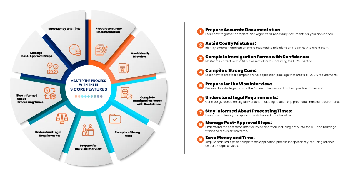 Navigating the K-1 fiancé visa process alone can lead to confusion, costly mistakes, and delays. Our course gives you everything you need, from the first petition to the final interview, so you can do it right the first time.
